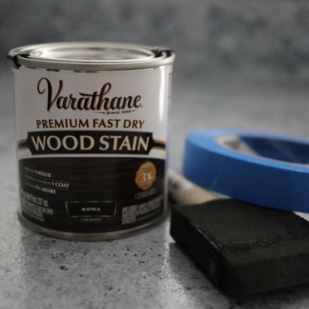 Step 2: Tape off any trim, walls, or ceiling that you don’t want to get the stain on. I was feeling brave and didn’t put a drop cloth down.. I didn’t drop any of the stain so you are probably safe without a drop cloth. The foam brush is pretty absorbent. But use a drop cloth or towel if you think you need it.
